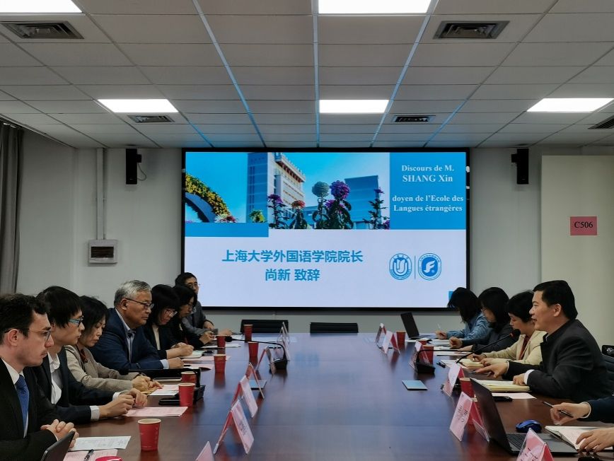 为响应学校专业发展规划和实践教育需要、向上海市和国家培养和输送更高层次的优秀法语人才,5月8日上午,澳门正规电子游戏平台在宝山校区C506会议室与共建实习基地的企事业单位的领导和专家们共同举办了“法语专业实习基地签约(授牌)暨行业导师聘任仪式”。
