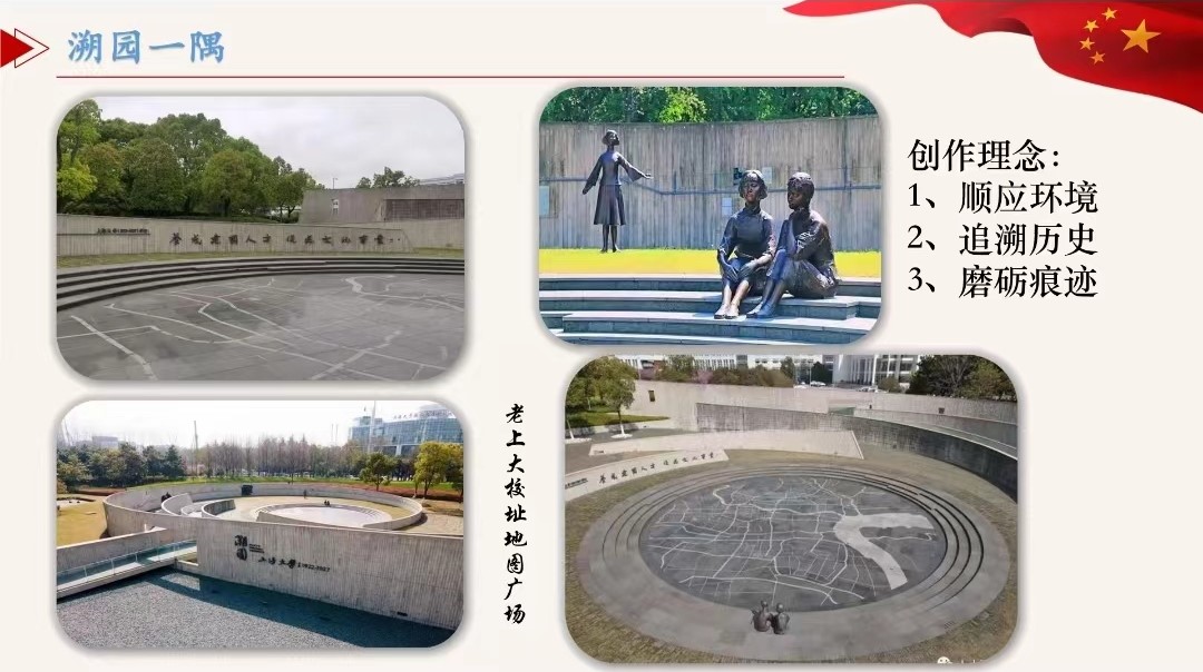 宣讲伊始,章思怡同学首先表达了能够云端宣讲的不易。而后,章思怡同学通过“老上大溯源”、“老上大精神”、“新上大展望”以及“溯园先辈荣光”四个部分展开了宣讲。其中,在介绍 “溯园”校史陈列区时,章思怡同学就溯园的创作理念、浮雕作品和实物图片为同学们进行了详细的讲解,并邀约同学们在疫情结束后去实地探访。