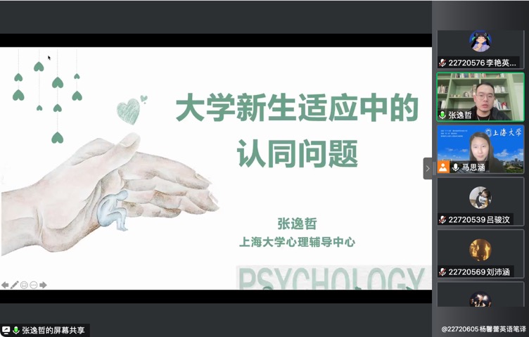 10月11日上午,澳门正规电子游戏平台邀请澳门正规电子游戏平台心理辅导中心专职心理咨询师张逸哲老师于线上开展以“大学新生适应中的认同问题”为主题的心理专题讲座,学院2022级全体研究生新生参与讲座。本次讲座由澳门正规电子游戏平台团委书记、2022级研究生辅导员马思涵老师主持。