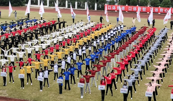 开幕式上,外院学子组成广播体操方阵,身着黑白两色运动服装配合着整齐划一的动作,以饱满的精神、昂扬的姿态向全校展示他们的青春风采。