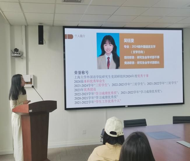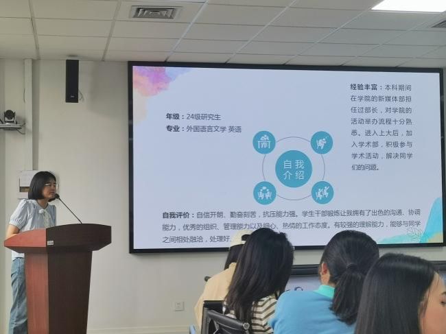 在听完上一年度的工作总结后,新一届研究生团总支和研究生会组织候选人依次登台,展开了一场精彩的竞选演说。他们不仅回顾了过去一年的工作历程,分享了自己的感悟与思考,还深入阐述了对所竞选职位所在部门的深刻理解,并详细勾勒出对未来一年工作的蓝图与规划,郑重表达了服务广大研究生的坚定决心。