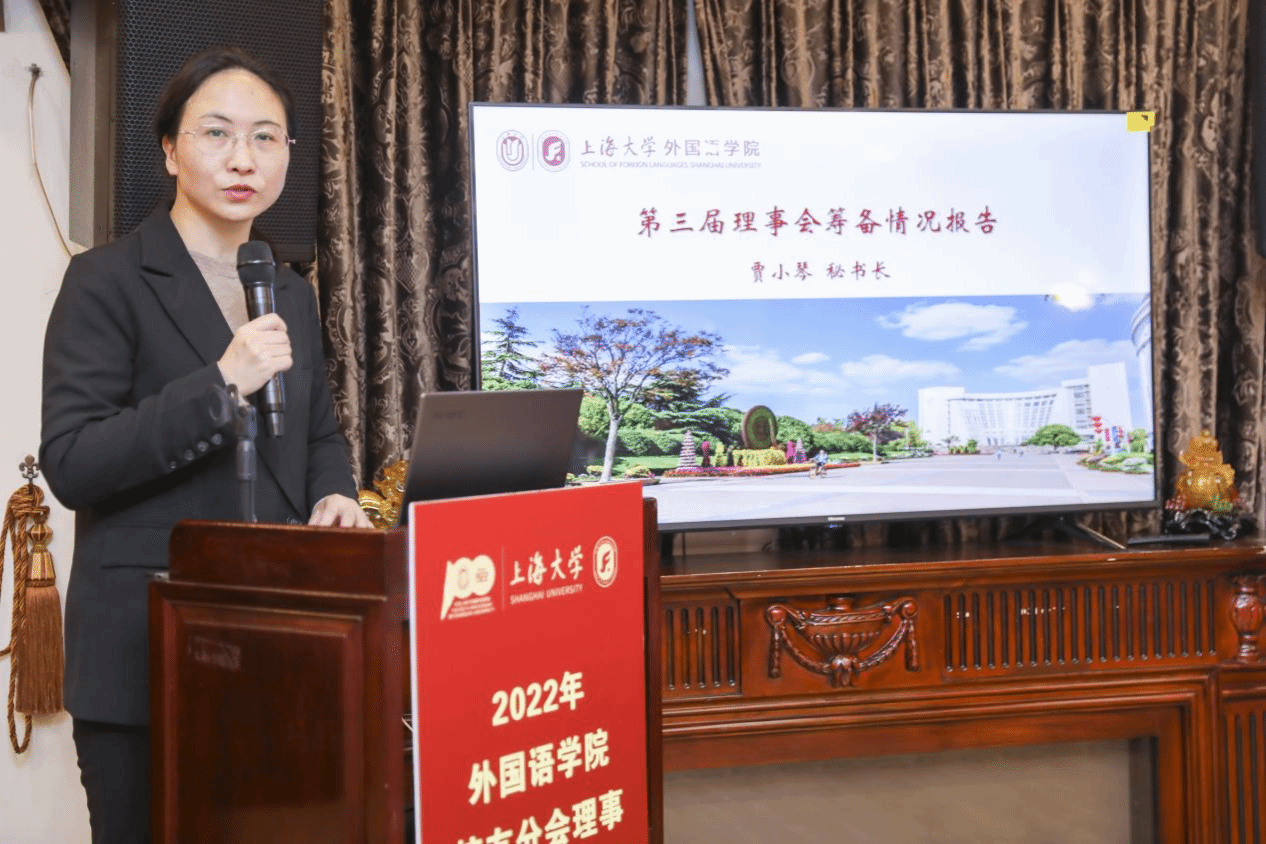 图3 贾小琴秘书长介绍《第三届校友分会理事会筹备情况》