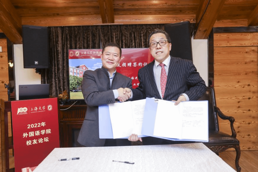 图8 上海长喜置业有限公司董事长孙禧进与尚新院长签署捐赠协议