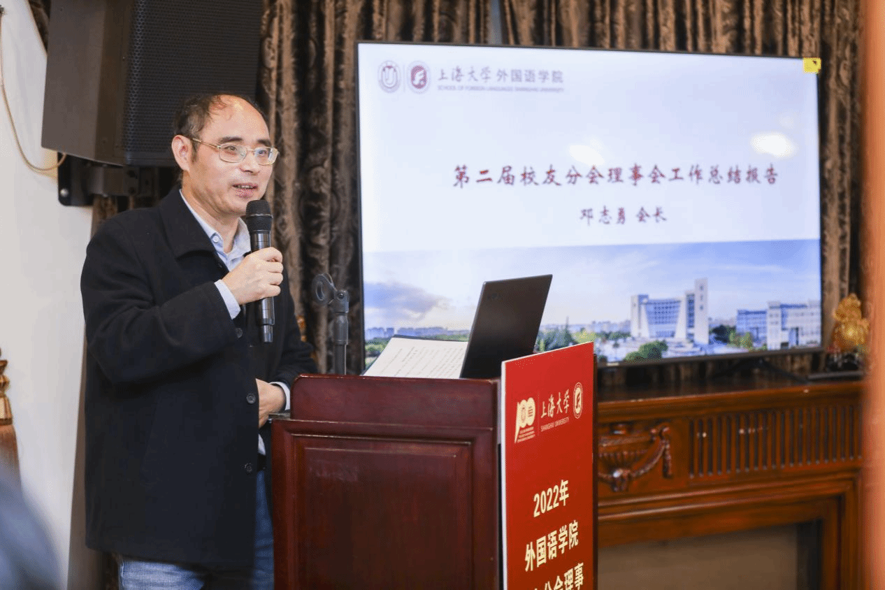 图2 邓志勇会长做《第二届校友分会理事会工作总结》