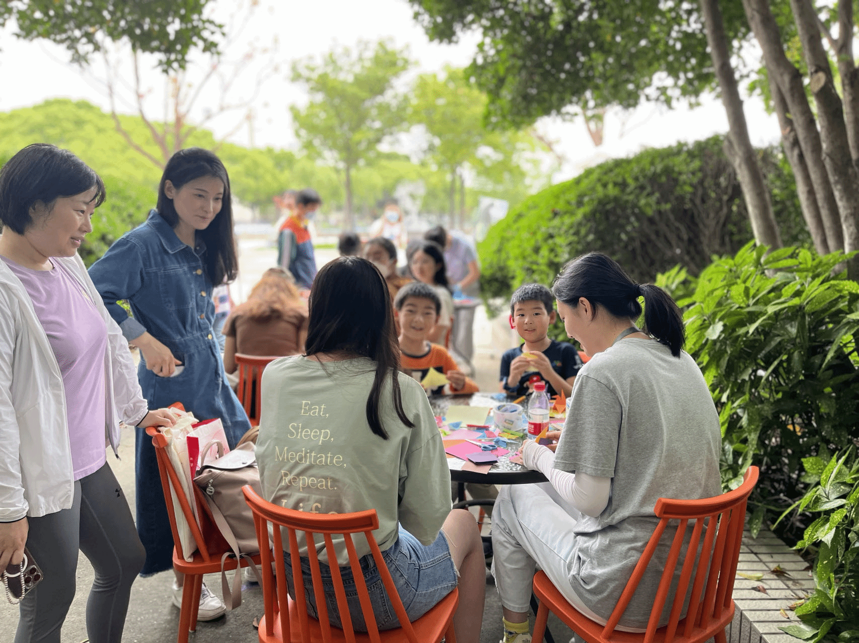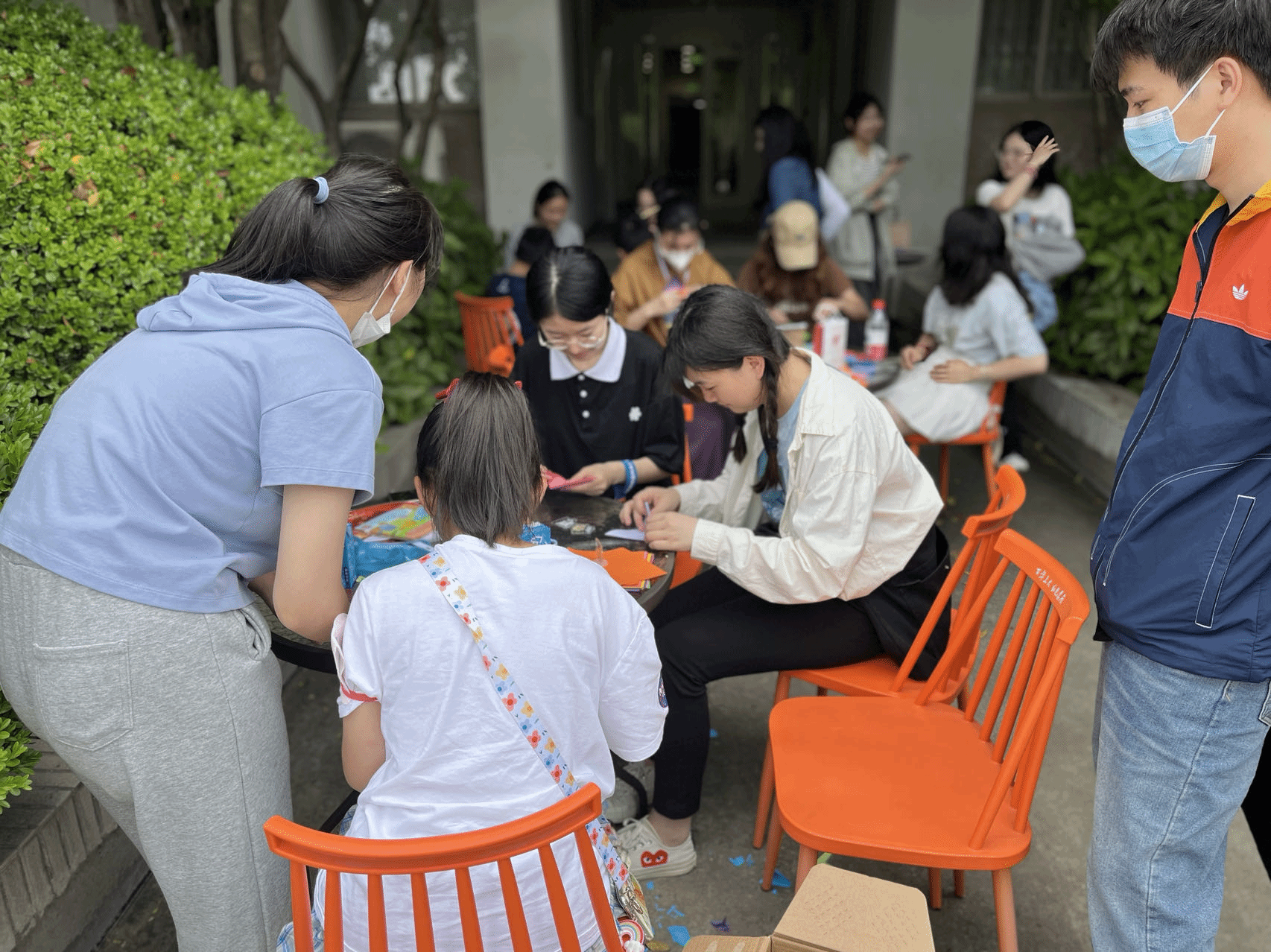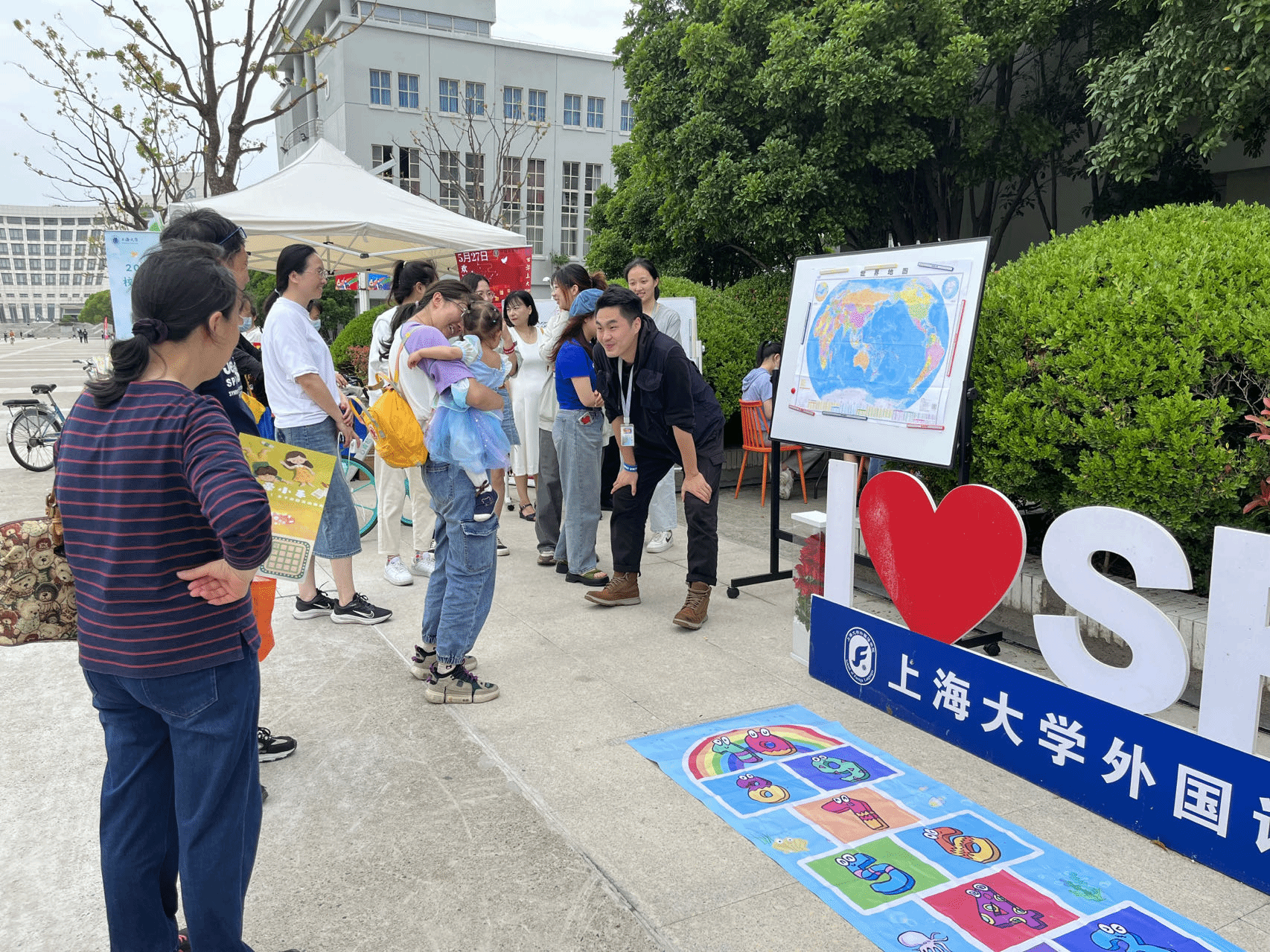 13时许,来参加亲子游园、外语角亲子互动、“一缕阳光”亲子手工课的校友们络绎不绝。“一缕阳光”亲子手工活动中,小朋友们在志愿者的悉心引导下完成了花朵、小船、千纸鹤等折纸作品;在“外语角”亲子互动中,校友们用多国语言指认全球城市地名、细数相关文化特征,仿佛重回学生时代。