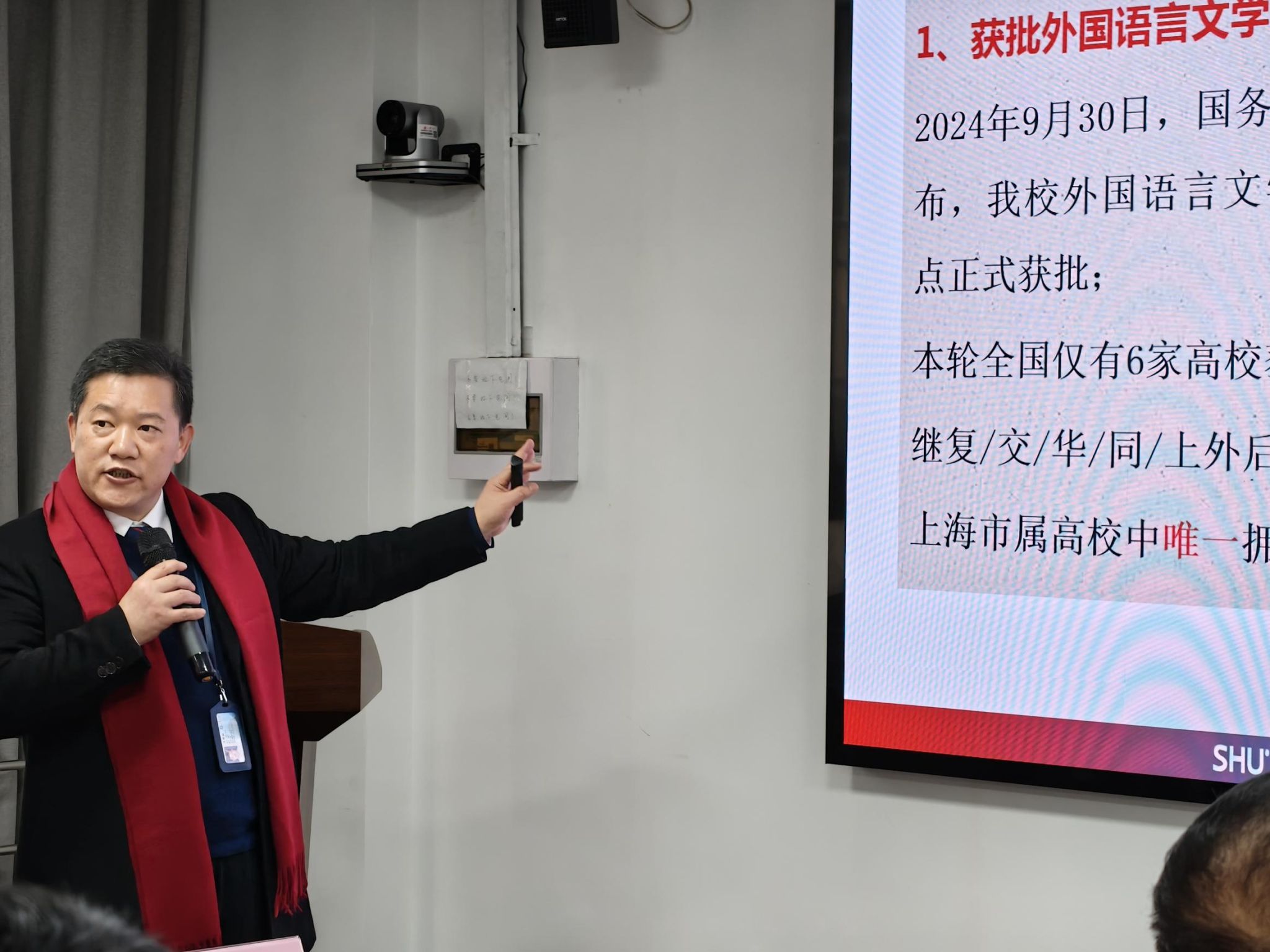 会议伊始,尚新副会长致欢迎辞,他首先对老领导和校友理事一直以来的关心和支持表达了由衷的谢意,详细总结了2024年澳门正规电子游戏平台的亮点工作,包括获批外国语言文学一级学科博士点、成立新一届外国语言文学学科发展战略咨询委员会等方面的重要成绩,并提出建构完善的澳门正规博士点管培体系、加大力度引进领军人才和学术带头人等2025年学院拟推进的重点工作。