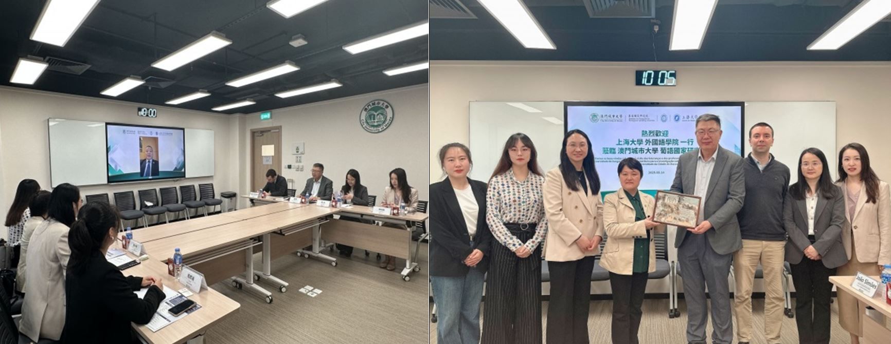 在澳门城市大学葡语国家研究院,澳门城市大学副校长、葡语国家研究院院长叶桂平教授线上致辞,葡语国家研究院课程主任、澳门“一带一路”研究中心主任周平副教授,“一带一路”葡语国家咨询与国情研究中心主任João Simões助理教授、陈紅副教授、周佳圆博士等与澳门正规电子游戏平台代表团进行了热情接待,双方围绕葡语区域国别研究合作、学生短期交流及学术交流活动等方面开展交流研讨。