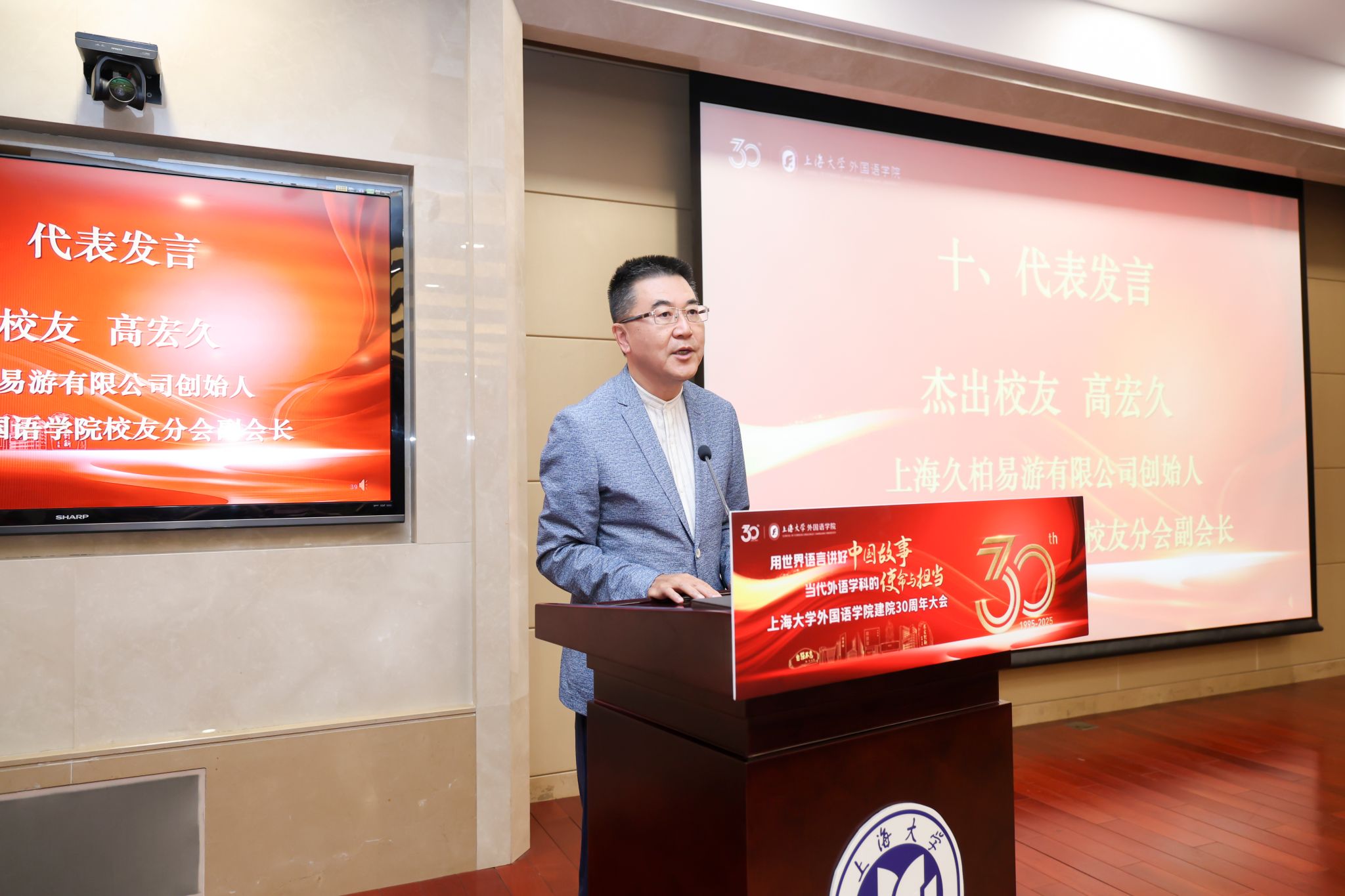 上海久柏易游信息科技有限公司创始人、澳门正规电子游戏平台校友分会副会长高宏久作为校友代表向学院表达了崇敬与感激之情,回顾了学院30年来的风雨兼程和辉煌成就,感谢恩师们的辛勤培育。他呼吁校友们心系母校,为学院发展贡献力量,并祝愿学院在新征程中不断创新进取,再创辉煌。