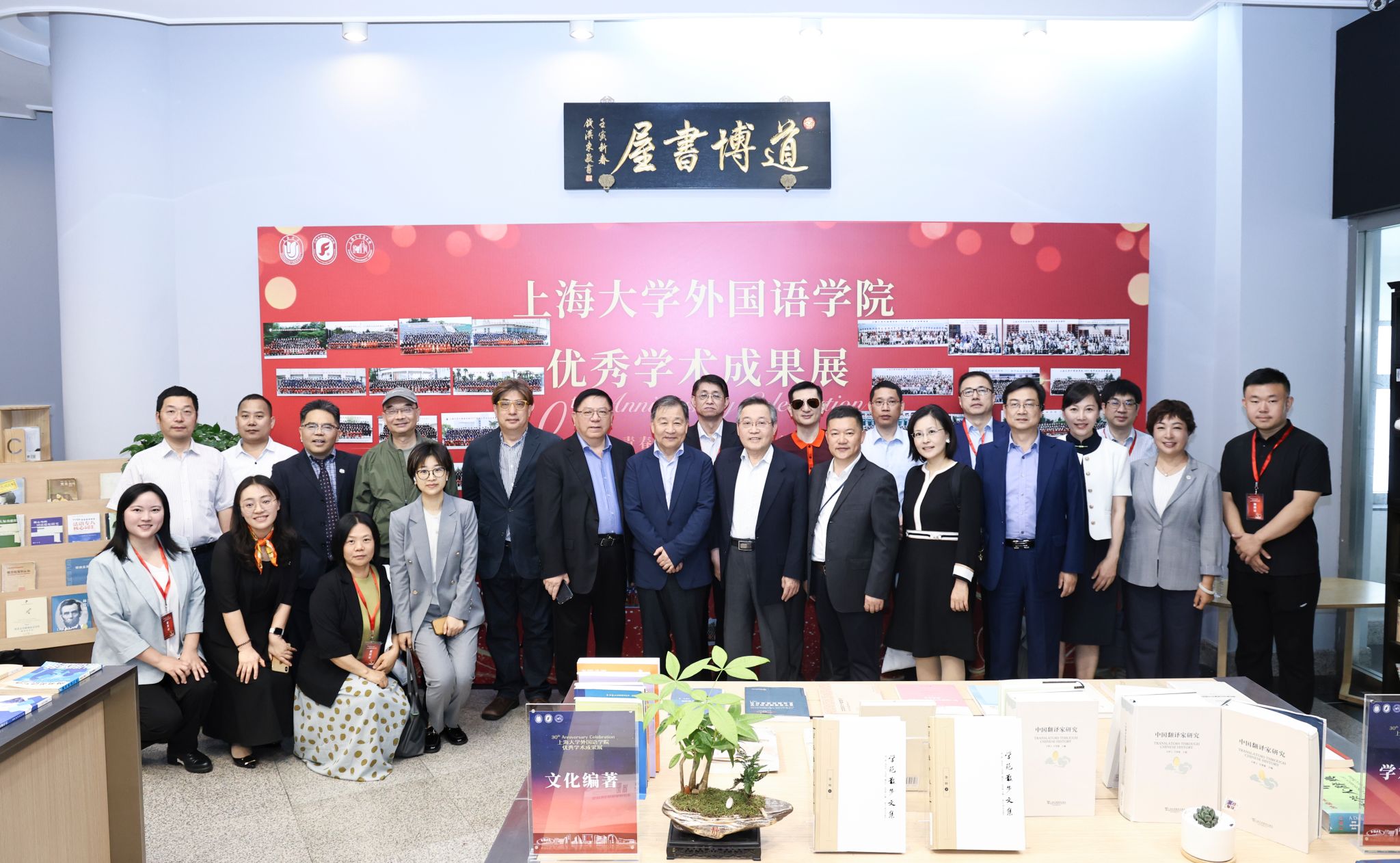 开幕式前,部分参会的校内外兄弟学院院长、专家教授、校友理事及师生代表前往图书馆道博书屋,在图书馆工作人员和学生志愿者的引导下,共同参观了澳门正规电子游戏平台教师优秀学术成果展。