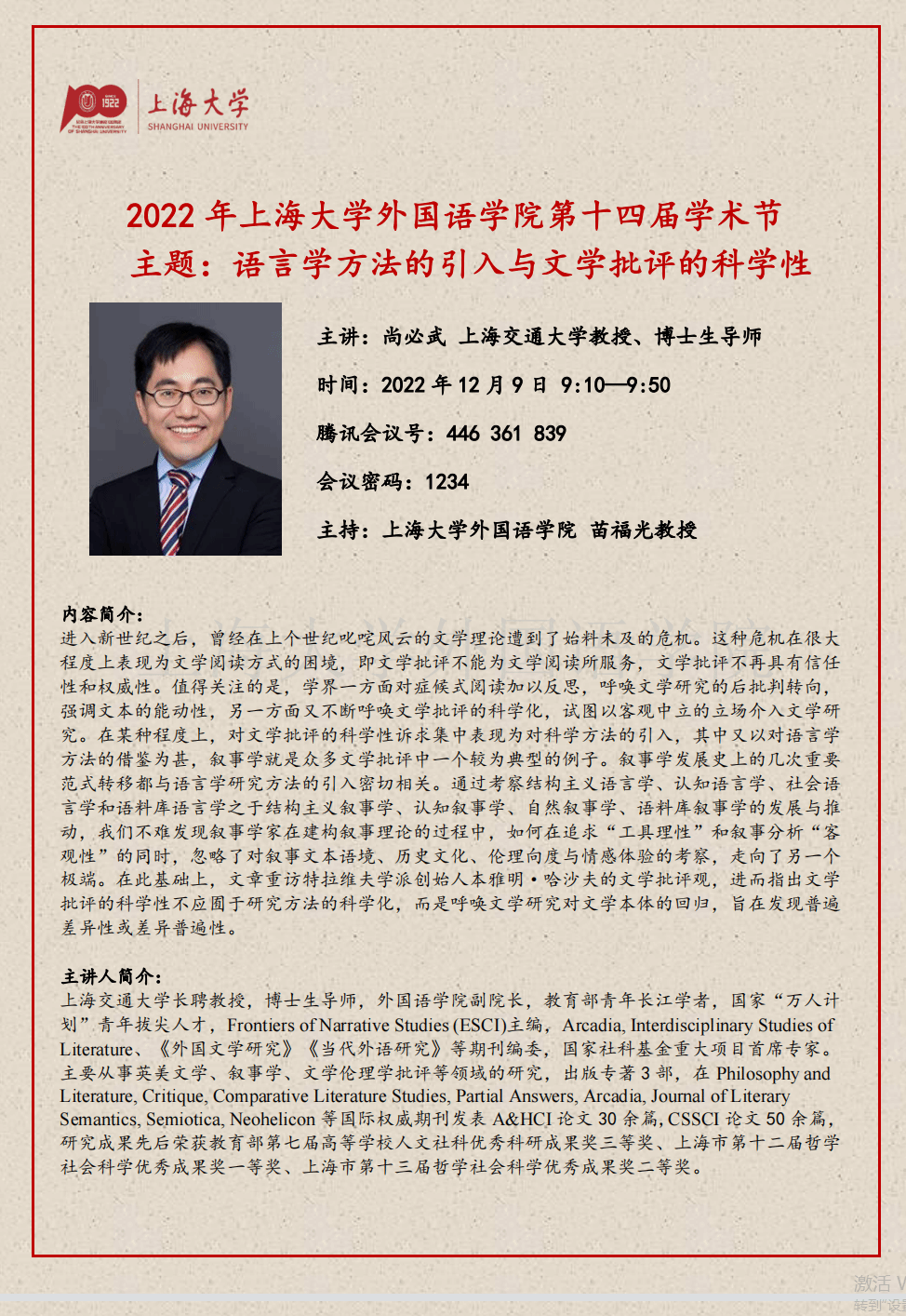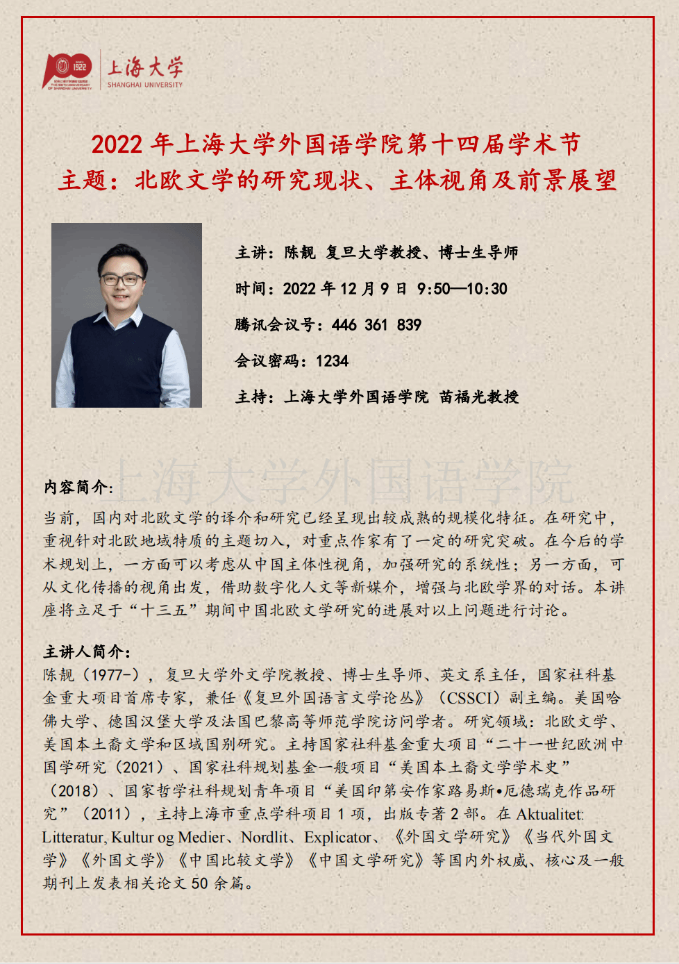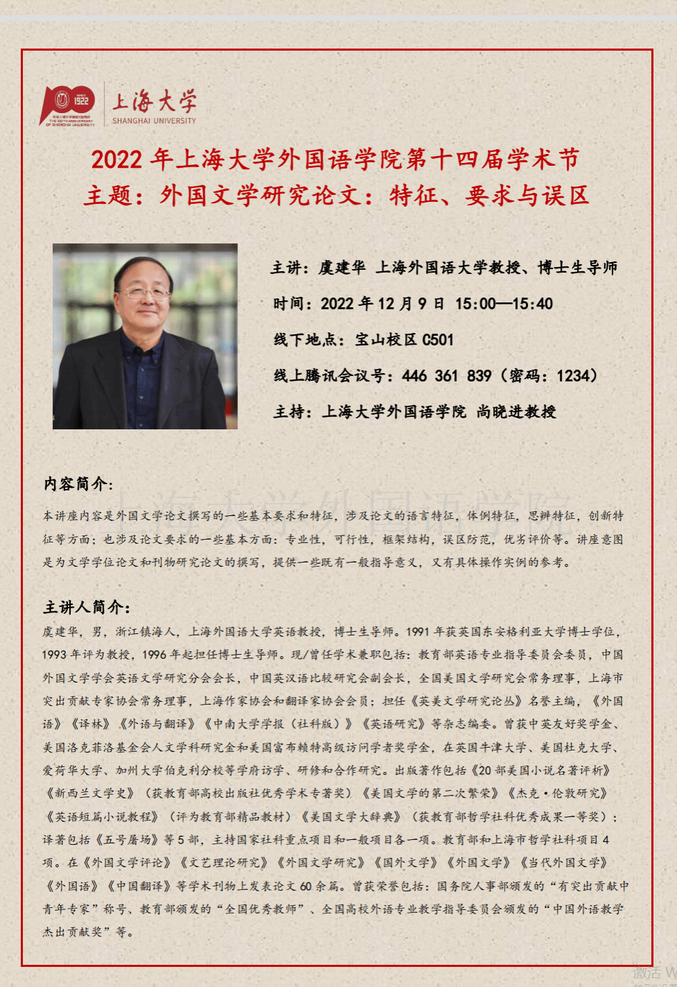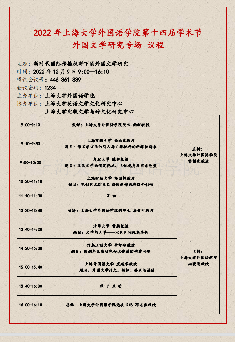 2022 年澳门正规电子游戏平台第十四届学术节外国文学研究专场议程