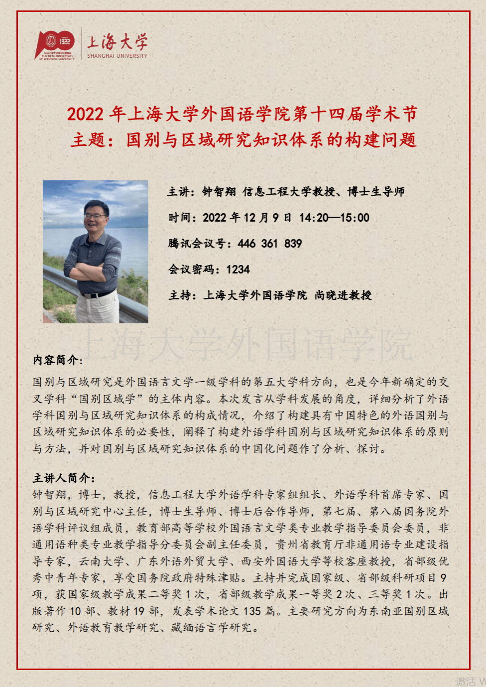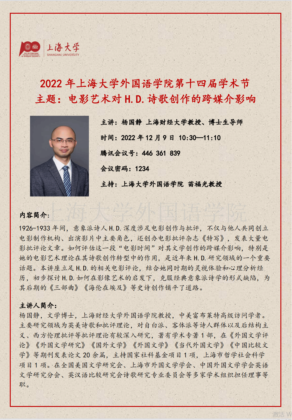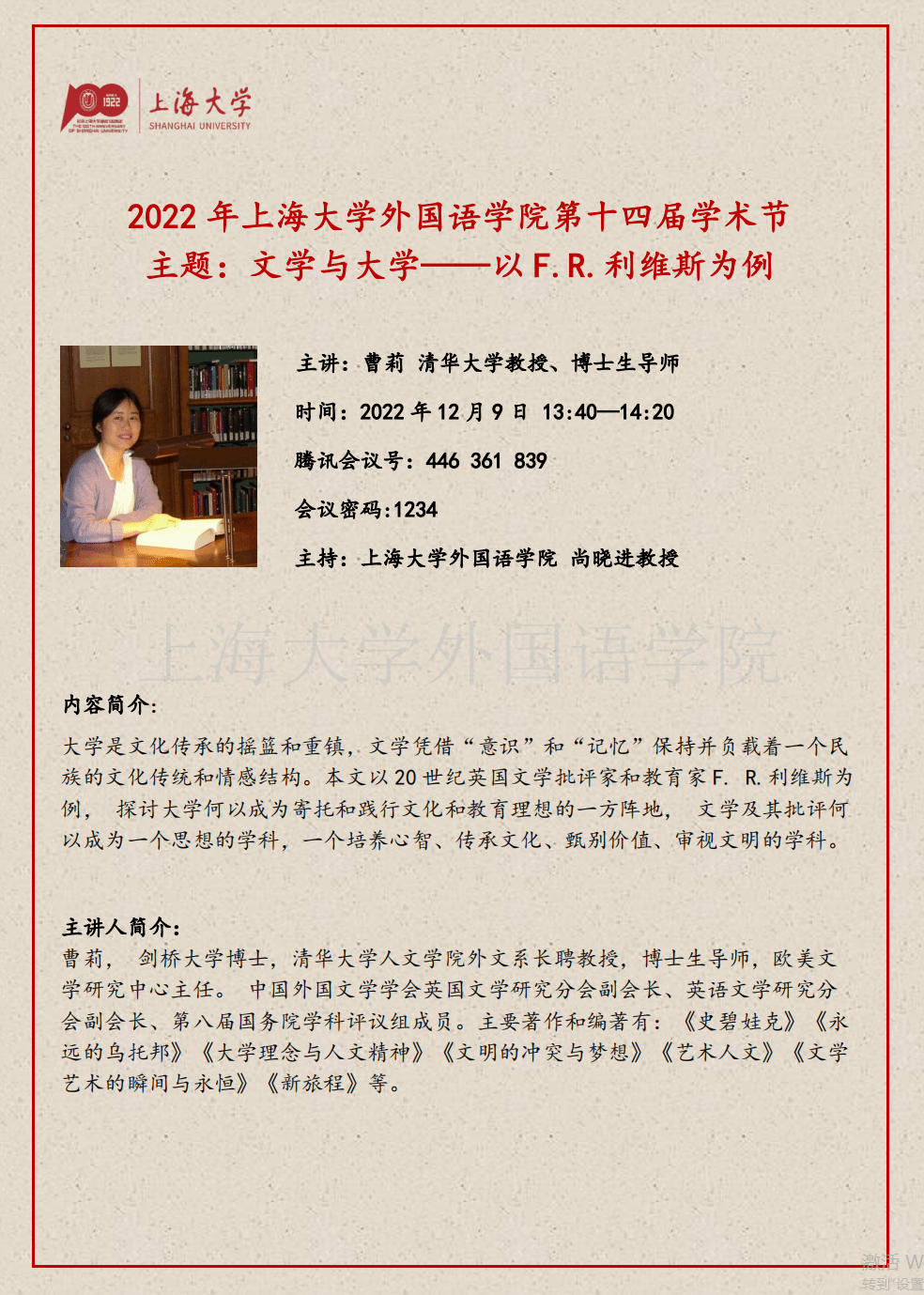 2022 年澳门正规电子游戏平台第十四届学术节外国文学研究专场议程