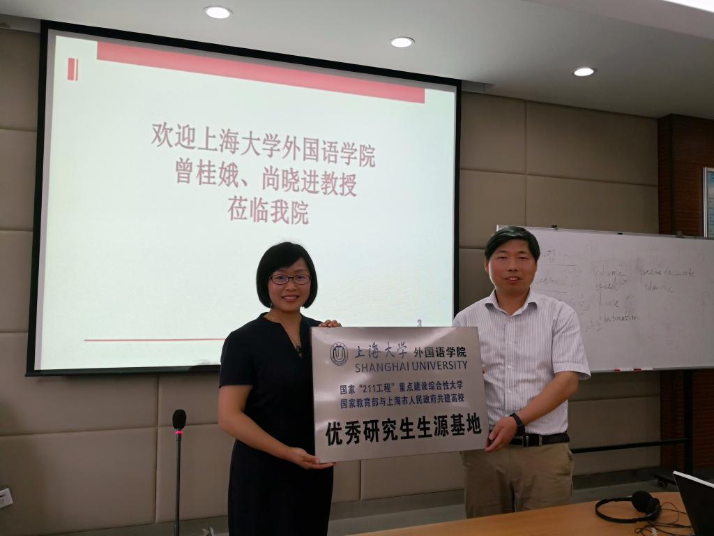 6月11-12日,澳门正规电子游戏平台曾桂娥教授与澳门正规电子游戏平台英语文学文化研究中心主任尚晓进教授赴安徽大学交流,得到安徽大学外语学院詹全旺院长等领导班子的热情接待。