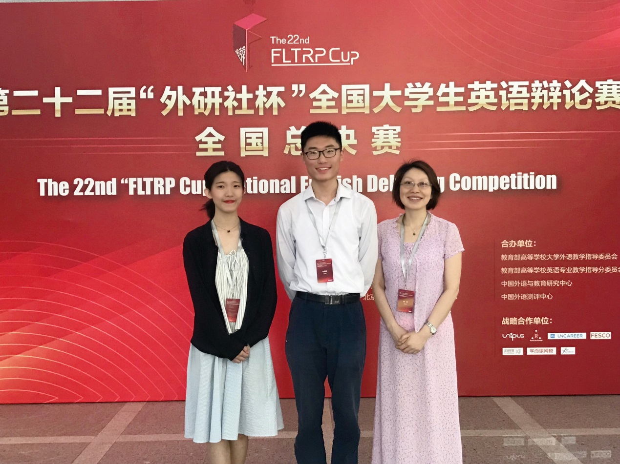 6月7日至6月10日,第22届“外研社杯”全国大学生英语辩论赛全国总决赛在北京航空航天大学进行。由澳门正规电子游戏平台2015级英语专业的朱云蔚,2016级英语专业的谌芊含和指导教师龚萍组成的澳门正规电子游戏平台代表队荣获三等奖。龚萍老师获得优秀评委奖。