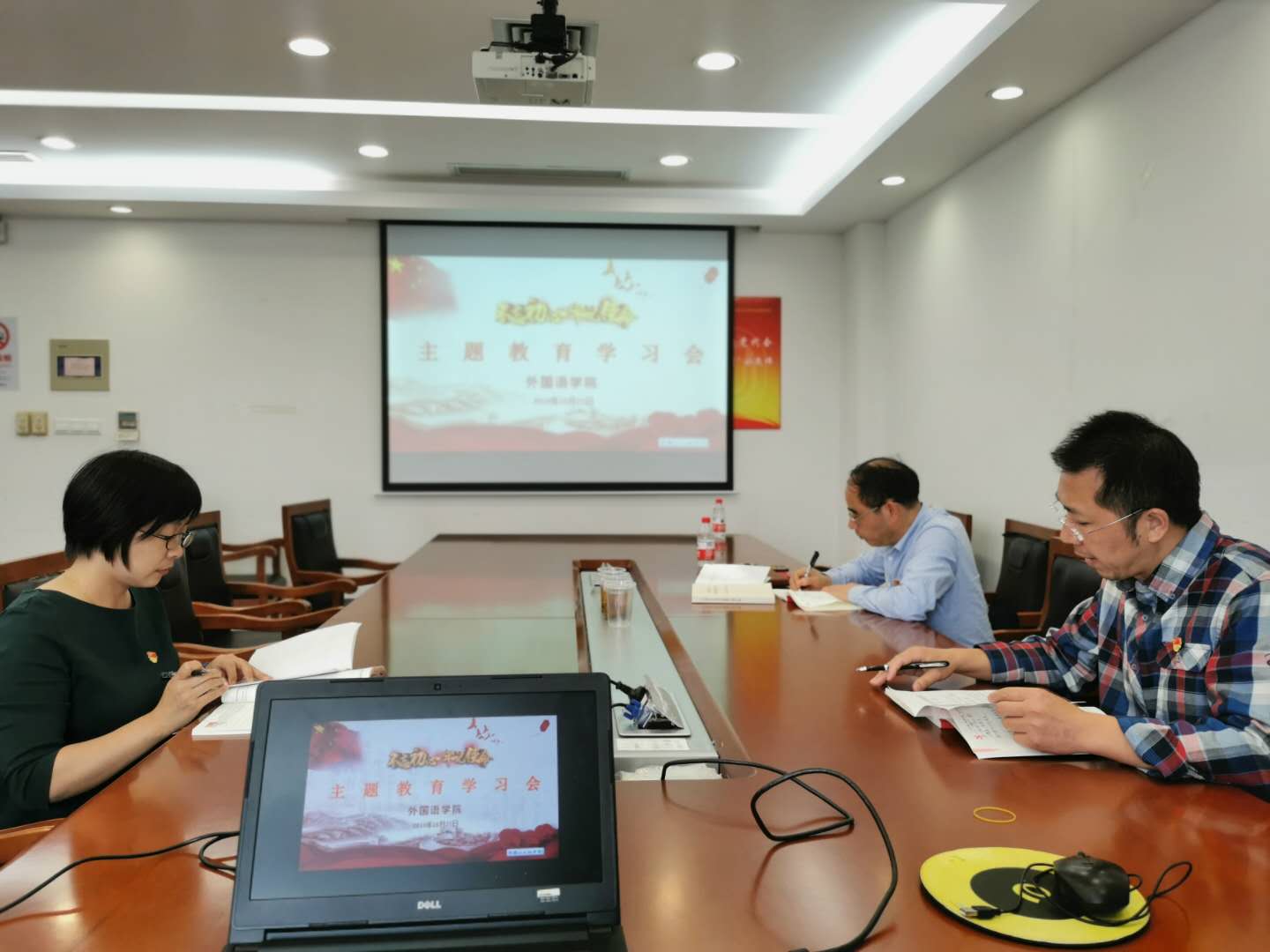 10月25日下午,澳门正规电子游戏平台党委在校本部C512会议室进行主题教育学习会,学院党委主持工作副书记曾桂娥、主持工作副院长邓志勇、英语系党总支书记陈秀猛和工会主席张建琴参加了本次学习会。