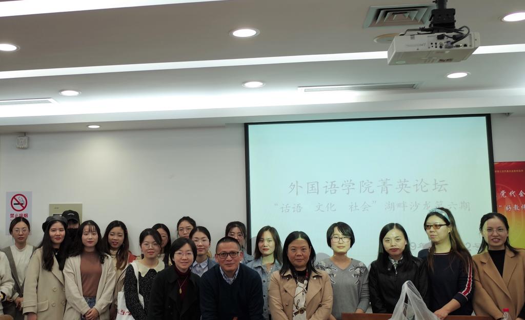 此后,胡开宝教授展开了题为“中国政治话语对外传播:问题与路径” 的演讲。胡教授在发言中提及,近年来我们利用语料库技术,对一些重要政治术语,如 “中国特色社会主义”“中国梦”“一带一路”“新型大国关系”和“命运共同体”等,在英美印等国主流媒体的应用趋势和特征进行较为细致、深入的分析,发现这些术语在英美印等国主流媒体中得到广泛传播,但常常被这些主流媒体误读和曲解。为此,我们有必要加大中国特色政治话语对外传播的力度,采取多形式、多方式和多视角向国际社会宣传中国政治话语,促进国际社会对中国政治话语尤其是核心术语内涵的理解和认知。胡教授的发言激昂澎湃,令在场师生深受启发,获益良多。随后,戴朝晖副教授做了题为“基于慕课理念的大学英语翻转课堂研究”的演讲,在座老师们积极提问交流,大家表示受益颇多。