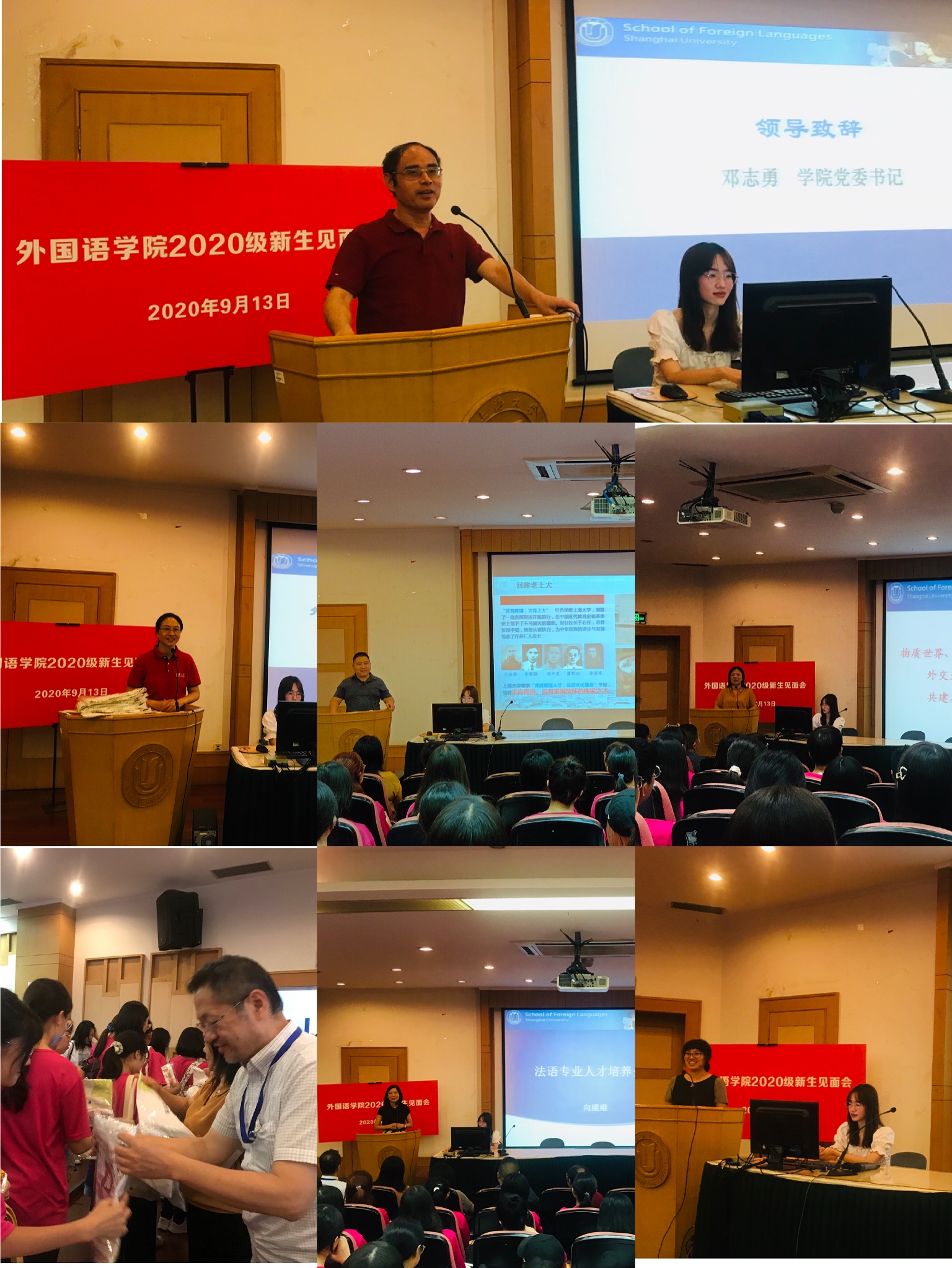 9月13日上午,澳门正规电子游戏平台2020级开学典礼暨新生见面会在校本部J103顺利举行。澳门正规电子游戏平台党委书记邓志勇教授、党委副书记贾小琴老师、学院副院长戴朝晖副教授、英语系主任唐青叶教授、日语系主任赵莹波教授、英语系教师代表朱音尔副教授、法语系教师代表向维维博士和辅导员马思涵老师、曹若兰老师、王从娟老师以及2020级全体本科生和研究生共同参加了开学典礼暨新生见面会。本次典礼由学院党委副书记贾小琴老师主持。