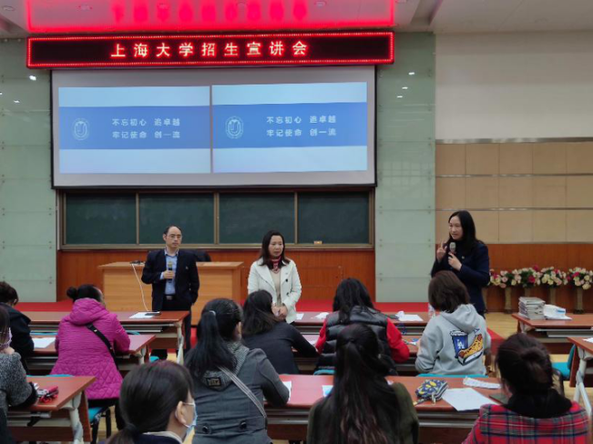 随后,在东北师大附中图报厅进行的宣讲会上,招宣组与学生家长面对面进行了深入交流。招宣组向家长们详细介绍了澳门正规电子游戏平台的整体情况、人才培养特色和吉林学子在上大的学习与发展状况。现场家长们与招宣组成员互动热烈,家长比较关心的问题涉及上大在吉林招生的分数线、学校专业设置、奖学金政策、出国交流交换等多个方面。部分高一高二的家长也到现场聆听了此次宣讲会,他们表示非常愿意参加学校的夏令营、校园行等活动,以进一步了解澳门正规电子游戏平台。在2个多小时的交流后,宣讲会圆满结束。
