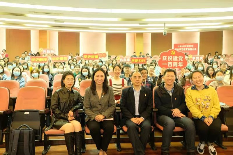 今年是中国共产党成立100周年,党中央在全党开展党史学习教育,正当其时,意义重大。3月28日上午,澳门正规电子游戏平台在宝山校区J103举行了党史学习教育动员大会暨党课第一讲。学院党委书记邓志勇、英语系教工党总支书记陈秀猛、研究生党总支书记马思涵、学生第一党支部书记崔一冰、研究生辅导员曹若兰,以及全体党员师生通过线上线下方式参加了动员会。会议由学院党委副书记贾小琴主持。