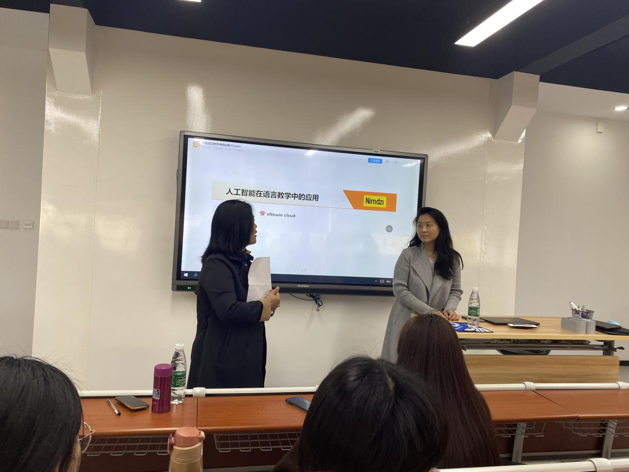 2021年4月2日下午,杭州鑫峰维教育创新产品部经理李洁受邀在澳门正规电子游戏平台嘉定校区文博楼408室为澳门正规2020级MTI硕士研究生开设了“人工智能(AI)在语言教学中的应用”讲座。本次讲座于线上、线下同时进行,由澳门正规电子游戏平台副院长唐青叶教授主持。