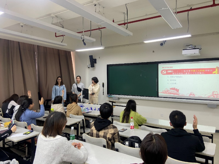 “党史知识竞答”环节旨在丰富同学们的党史知识,提升同学们的政治理论素养,题目共分为三种类型,分别是单选、多选和判断题。同学们抢答积极,现场气氛十分活跃。