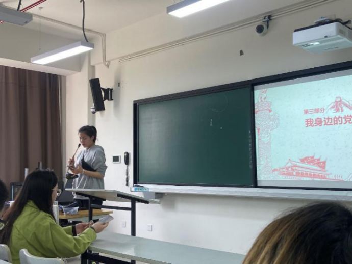 在“党史学习教育”部分,英语系团支书毛艺凝向同学们介绍了中国共产党建党至今经历的一系列抗争。理论学习之后,同学们一起观看了中国共产党艰苦奋斗的相关视频。学习完党的历史,同学们更加体会到幸福生活的来之不易,更加清楚的了解到党全心全意为人民服务的信念,更坚定了实现中华民族伟大复兴的信心和责任。