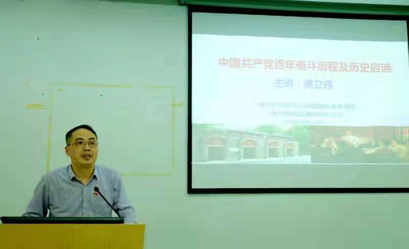 5月14日下午,澳门正规电子游戏平台党史学习教育在校本部J101会议室举行。澳门正规电子游戏平台马克思主义学院副院长、澳门正规电子游戏平台政党治理研究中心主任高立伟教授受邀做了题为“中国共产党百年奋斗历程及历史启迪”的党史讲座。学院党委书记邓志勇主持讲座,全体教师到场聆听。