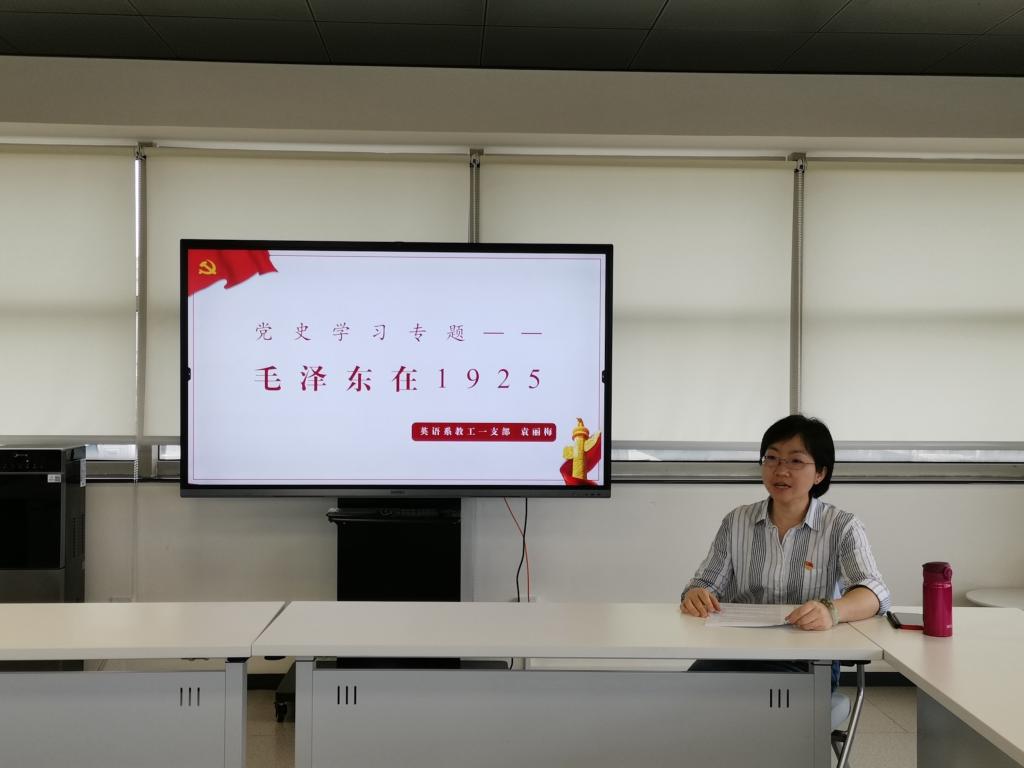 2021年6月16日下午,澳门正规电子游戏平台英语系教工一支部在校本部C501举行了党史学习教育专题讨论——“毛泽东在1925”,党员们度过了一个有意义的主题党日。