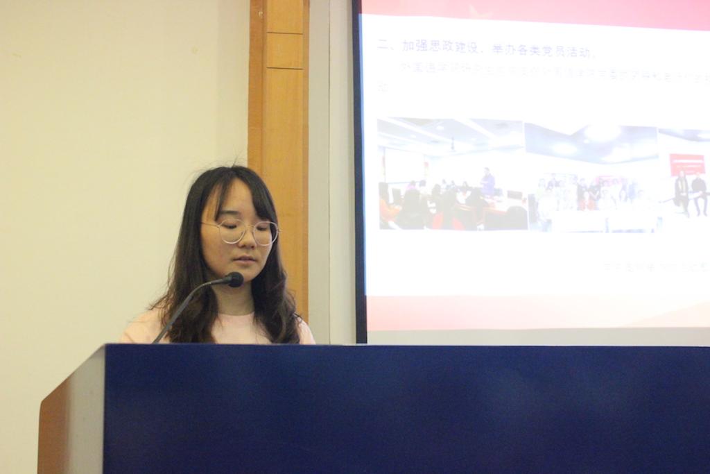 会上,王颖娜作了《澳门正规电子游戏平台2020-2021学年研究生党总支工作报告》回顾了一年来主要工作及取得的成绩。在这一年中,澳门正规电子游戏平台研究生党总支严格程序标准,推进党员发展,从严落实“三会一课”制度,以党员培训教育、党员谈心谈话等形式开展党员教育活动,提升党员党性。研究生党总支积极开展了“四史”学习教育和党史学习教育,丰富载体,创新形式,举办了党支部书记培训班和海星外语微党课,组织党员志愿服务为群众做实事。最后,王颖娜指出党总支的理论学习针对性不够,组织活动还需创新,宣传力度有待加强。全体党员认真审议并一致通过了工作报告。