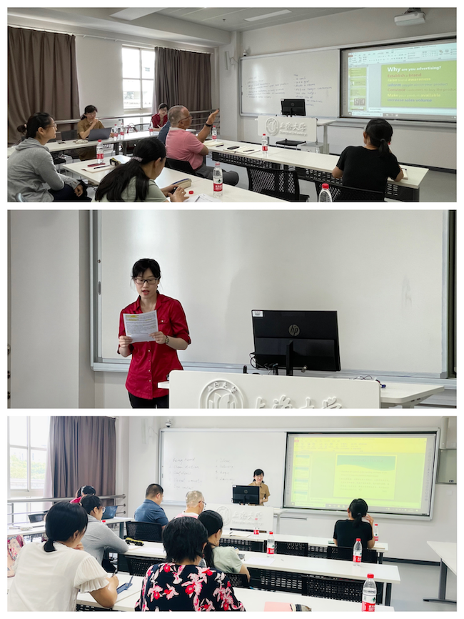 澳门正规电子游戏平台今年共有两位青年教师参赛,分别是赵嘉嘉老师和孙序老师。两位教师按照赛制,进行课程内容讲解。赵嘉嘉老师设计的是《商务英语入门》课,通过案例导入,引导学生讨论广告宣传的方法。孙序老师设计的是《英汉口译》课,通过案例导入,给学生讲授公共演讲的技巧和注意事项。