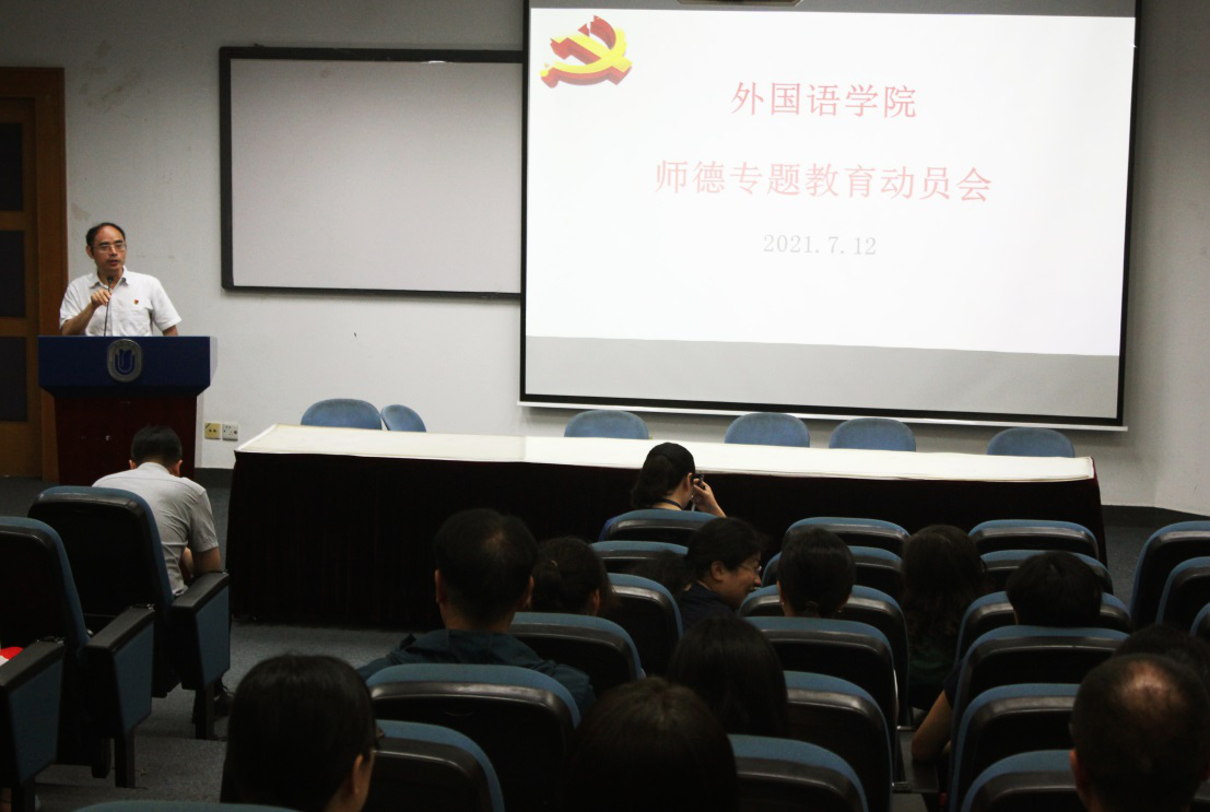为建设新时代教师队伍和树立新时代师德师风,2021年7月12日,澳门正规电子游戏平台在校本部J102举办了师德专题教育动员会。澳门正规电子游戏平台党政领导班子成员及全体教工参加了本次动员会。会议由党委书记邓志勇主持。
