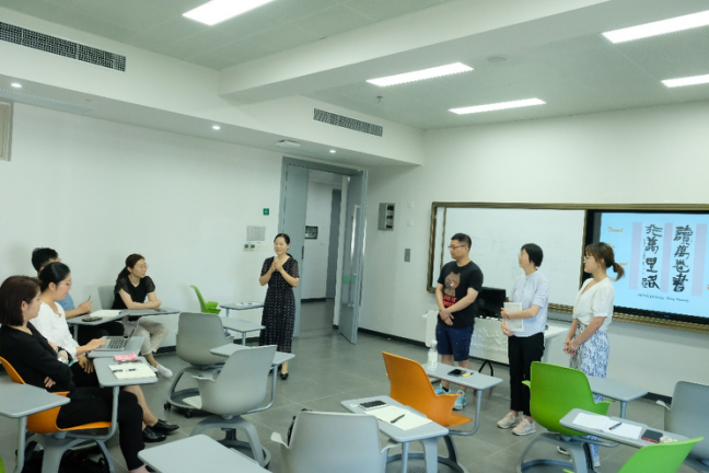 万教授结合自己的教学经验围绕双语教学课堂“为什么进行教学设计”、“教学设计的几种模式”、“教学交互在教学设计中的重要性”以及“教学交互在课堂中的应用实例”等几个方面进行了详细介绍。此外,通过教学互动实践让参与者亲身体验互动设计的过程,体会了“教无定法、教学有法、互动为王”的教学理念。
