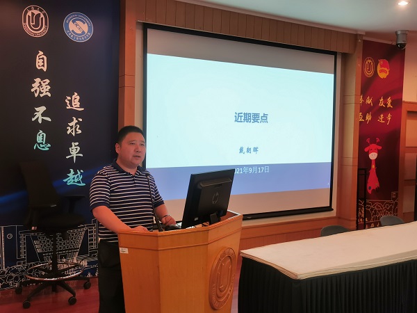 分管本科生教学工作副院长戴朝晖就学院青年教师在本科课堂教学竞赛获奖,学院教师在市、校两级获得立项,本科生转专业工作,教材检查工作,新学期学生上课情况,以及学院下一步工作展望做了报告。