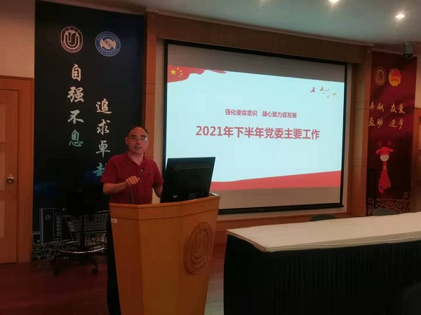 随后,党委书记邓志勇就2021年下半年党委主要工作作了部署。他指出,上半年学院顺利完成了学校巡察组开展的二级党委巡察工作,暑假里制定了整改方案,目前已进入整改完成阶段。下半年学院还将迎来人大代表选举、干部聘任与党委换届选举工作,继续推进党史学习教育、全程导师制深化、“三全育人”机制、校企共建、师德师风建设、疫情防控等工作,希望全体教工齐心协力完成好学院各项工作,确保工作顺利开展。