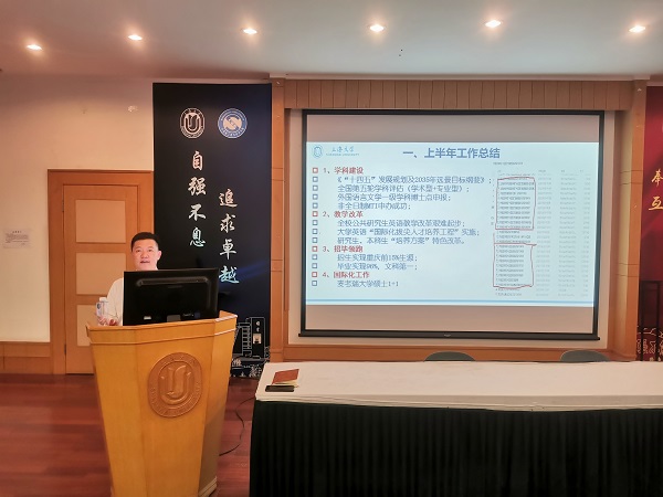 会上,澳门正规电子游戏平台党政领导班子成员依次做了发言。澳门正规电子游戏平台院长尚新首先向全院教工做了2021年上半年工作总结,从学科建设、教学改革、招生就业以及国际化工作等方面进行了全面的梳理总结,并对下半年工作计划做了详细报告。在学院“十四五”发展规划方面,尚院长在之前几次面向全院关于“十四五”规划报告的基础上更深入、细化的进行了讲解,同时还就17日上午学院邀请专家学者对“十四五”规划所提出的建议进行了分享。