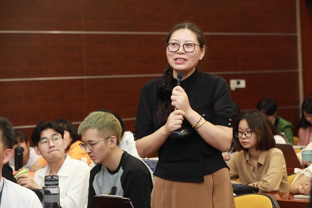 互动环节中,与会师生围绕大学外语教育从多个角度展开热烈讨论。澳门正规电子游戏平台外语教育研究中心主任张新玲教授前瞻性地探讨了教育教学与技术深度融合的前景;澳门正规电子游戏平台朱音尔副教授和虞怡达博士就刘教授提出的形成性评价交流心得体会。在座师生深感获益匪浅,对大学外语教育有了全新的认识。