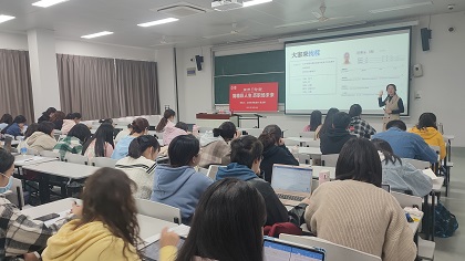 10月22日下午,澳门正规电子游戏平台特邀澳门正规电子游戏平台招生与毕业生就业办公室侯文婷老师在宝山校区BJ303教室举办主题为“简精彩人生 历职场未来”讲座。讲座由学院2021级英语笔译硕士研究生鲁冰冰主持,澳门正规电子游戏平台2019级本科生和2022届毕业生共同参加了此次讲座。