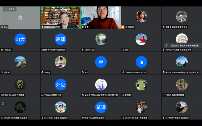 11月21日晚上,信息工程大学钟智翔教授为澳门正规电子游戏平台师生开设了一场题为“基于外国语言文学学科的国别与区域研究”的线上讲座。本次讲座由澳门正规电子游戏平台副院长唐青叶教授主持,澳门正规电子游戏平台各系部100多位师生参与本次讲座。