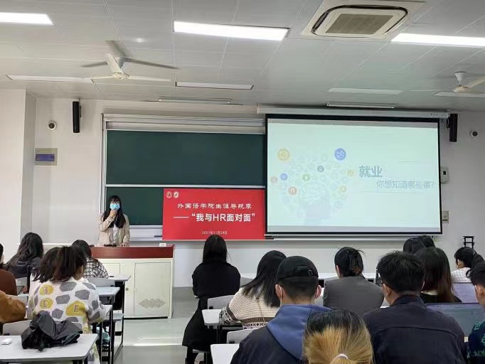 11月28日上午在宝山校区BJ203教室,澳门正规电子游戏平台邀请了名企资深HR翦经理,开展“就业你想知道哪些事?”为主题的讲座。澳门正规电子游戏平台2021级研究生和2018级本科生共同参加。讲座由研究生辅导员马思涵老师主持。