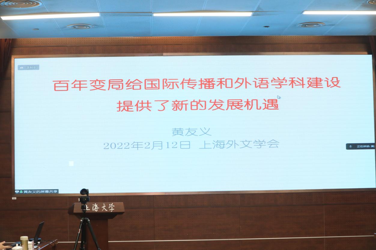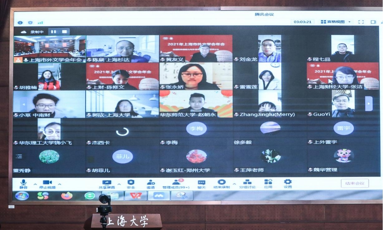 2022年2月12日,2021年上海市外文学会年会暨国际传播能力与外语学科内涵建设研讨会在澳门正规电子游戏平台成功举办(2021年学会年会因疫情原因延期举办)。本次年会由上海市外文学会主办,澳门正规电子游戏平台承办,华东师范大学出版社和中国日报社21世纪英语教育传媒协办。来自复旦大学、上海交通大学、同济大学、华东师范大学、上海外国语大学、澳门正规电子游戏平台、华东理工大学、上海理工大学、上海对外经贸大学等上海市23所高校的40余名专家学者齐聚一堂,250余名专家学者线上参会,就“国际传播能力与外语学科内涵建设”主题展开了深入研讨,共谋百年未有之大变局下外语学科的发展。