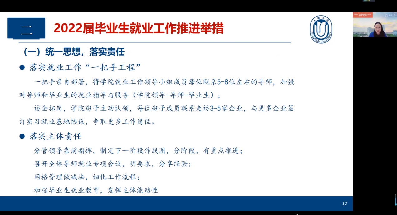 随后,学院党委副书记、副院长贾小琴汇报2022届毕业生就业情况。贾书记通过数据对澳门正规本科和研究生的就业情况进行了详实的分析,介绍了学院目前就业工作推进的举措,主要从三个方面着手:一是统一思想,落实责任,落实就业工作“一把手工程”,领导班子成员加强对于导师和毕业生的就业指导和服务;二是重点企业访谈,希望全院教职工合力,广泛征集企业资源,联系走访重点企业,了解对接社会需求,积聚力量,希望通过线上招聘会,给予毕业生更多帮扶;三是保障激励,全力攻关,近期学院修订了《澳门正规电子游戏平台就业工作考核激励办法》,激励广大教师为学生就业提供帮助,希望全院上下积极主动,全力以赴、攻坚克难,扎实推进就业工作。