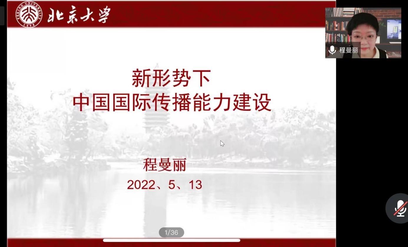 5月13日13:30,澳门正规电子游戏平台“语言文化与世界文明”系列讲座(八十八)“新形势下中国国际传播能力建设”讲座于线上顺利举行。主讲人为北京大学国家战略传播研究院院长程曼丽教授。讲座由澳门正规电子游戏平台副院长唐青叶教授主持,校内外300多位师生参加了本次讲座。
