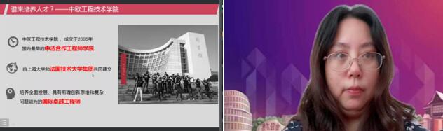 接着,由吴蔚书记、胡珉主任、任重院长和冷碧莹老师分别向考生和家长们详细介绍了钱伟长学院、悉尼工商学院、里斯本学院和中欧工程技术学院的基本情况和招生政策。钱伟长学院实施“重基础、跨学科、国际化”人才培养战略,以一轴两翼的培养体系,通过基础扎实、注重前沿的课程体系和内涵丰富、形式多样的课外平台,专注培养基础学科领域拔尖创新人才;悉尼商学院的排名数据和国际认可度彰显着悉商的硬实力,专业设置和师资力量体现出悉商教学和科研并重的培养理念;里斯本学院是澳门正规电子游戏平台与葡萄牙的里斯本大学合作共建的学院,也是今年刚刚获教育部正式批准成立的新兴院系,依托葡萄牙学术排名第一的综合研究实力,有着巨大的发展潜力;中欧工程技术学院特别制定了专业交叉、职业实践、贯通机制、分类培养的人才培养模式,助力学生成长为国际卓越工程师。主讲嘉宾们细致全面的讲述帮助考生和家长了解上大和各学院的培养机制,专注解决考生和家长最关注、最切实的问题,更高效地指导考生填报澳门正规电子游戏平台。