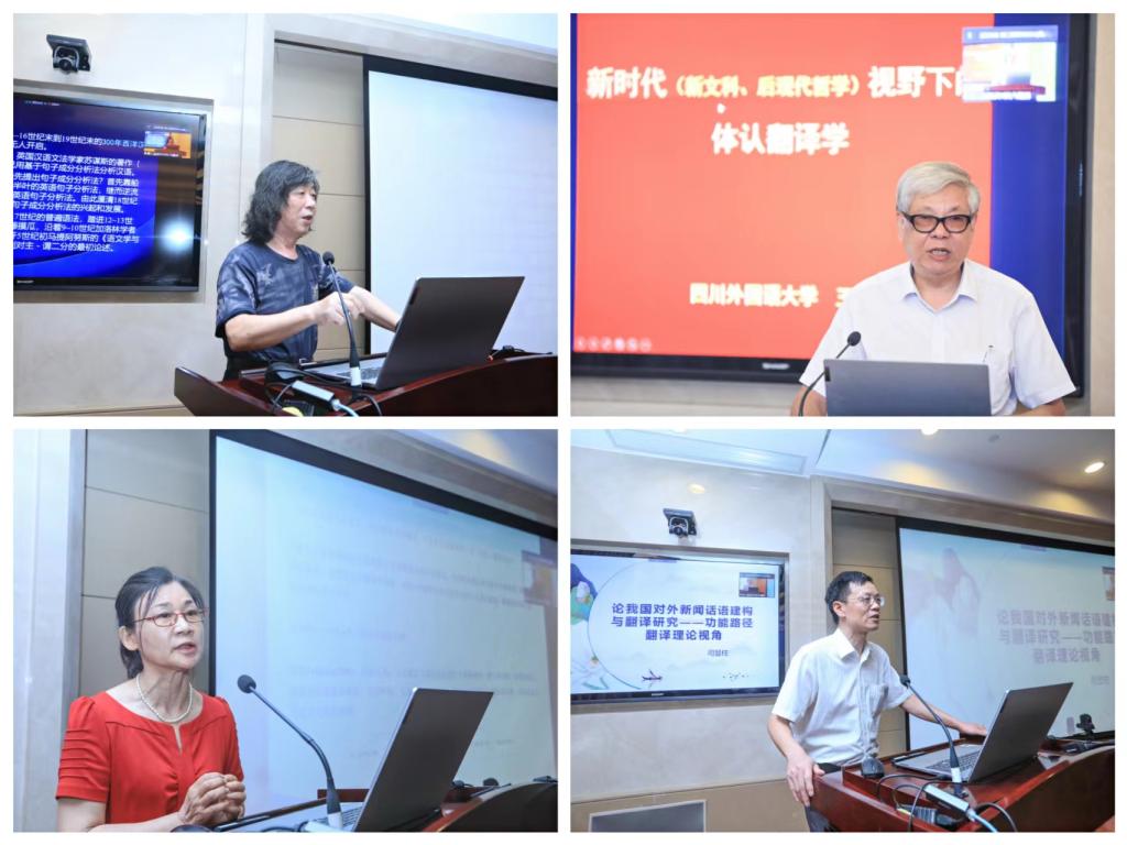 8月21日下午进行了4场主旨报告。中国英汉语比较研究会副会长、湘潭大学文卫平教授从双否律探讨汉语方言中的双重否定,用连续统对汉语方言中的双重否定现象进行统一描写和解释。中国英汉语比较研究会副会长、北京第二澳门正规电子游戏平台“翔宇领军学者”、高级翻译学院院长司显柱教授从功能路径翻译理论视角出发,结合我国媒体与其他媒体英语新闻报道话语建构上的差异,探索我国对外新闻话语的翻译原则、策略与方法。新加坡教育部H2翻译课培训导师兼主任考官谭慧敏副教授的报告则基于外教视角,指出新时代中国翻译人才培养的根本问题,提出翻译学科建设应关注复合型和复语翻译人才的培养,注重政学产研的协作关系。中国英汉语比较研究会常务理事兼副秘书长、澳门正规电子游戏平台院长尚新教授做了题为“蕴含关系与基于对比分析的翻译实证研究”的报告,认为在“就语言而为语言”的层面上,对比分析与翻译研究之间存在着逻辑上的蕴含关系,而就翻译策略来说,基于对比分析的翻译研究不能推导出语言之外的翻译策略。