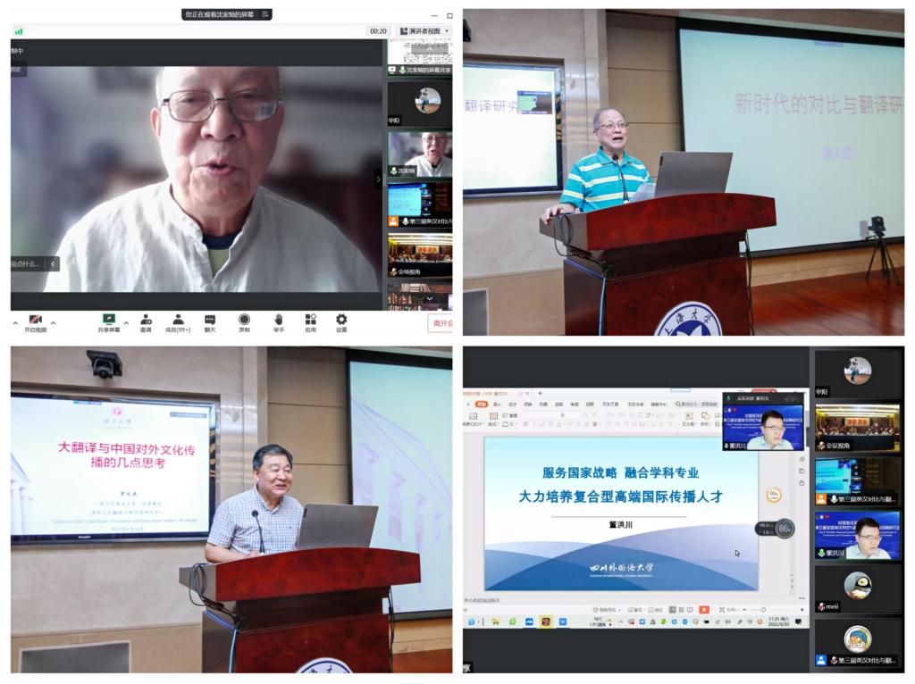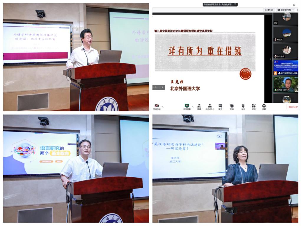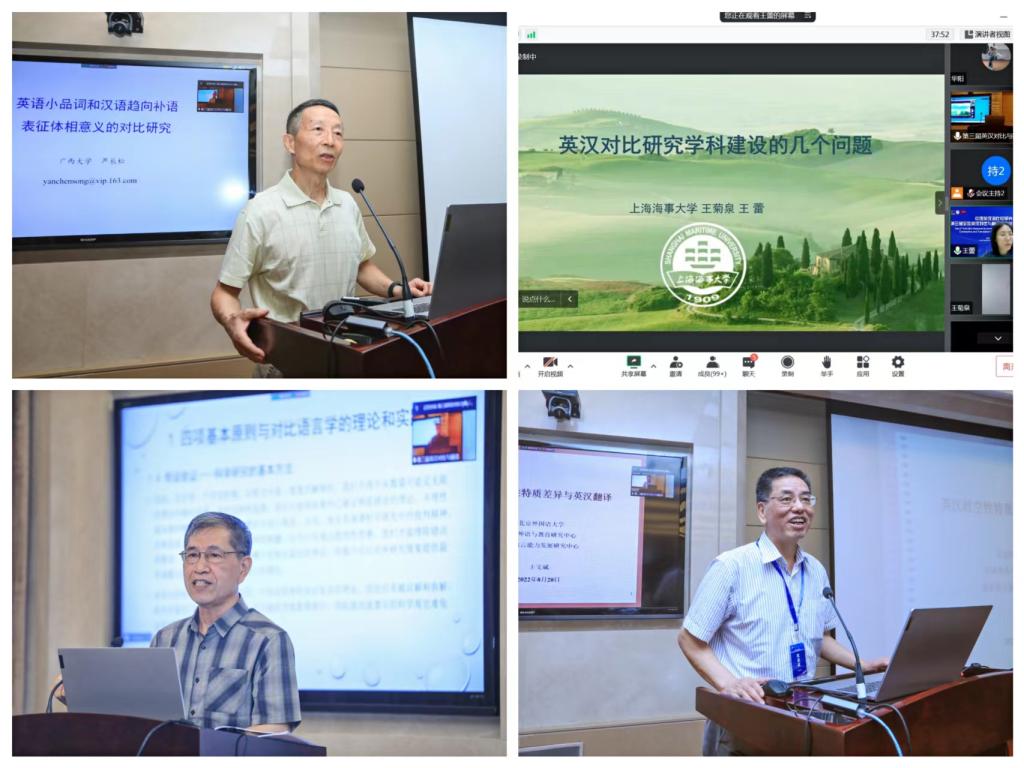 值纪念澳门正规电子游戏平台建校100周年之际,2022年8月19日至21日,中国英汉语比较研究会第三届全国英汉对比与翻译研究学科建设高层论坛在澳门正规电子游戏平台成功举办。本次论坛由中国英汉语比较研究会和澳门正规电子游戏平台主办,澳门正规电子游戏平台承办,上海市外文学会、《上海翻译》编辑部协办。国家一级学会中国英汉语比较研究会会长罗选民、中国社科院文哲学部委员沈家煊、第七届国务院学位委员会外国语言文学学科评议组委员王克非、第八届国务院学位委员会外国语言文学学科评议组召集人查明建、教育部英语专业教指委委员董洪川、著名语言学家潘文国、李葆嘉、王寅等,资深翻译家方梦之、何刚强、左飚等名家学者,中国英汉语比较研究会领导班子集体等来自全国各高校的50位名家学者线下齐聚澳门正规电子游戏平台宝山校区,831人次专家学者线上参会或旁听,BiliBili直播平台累计在线收看人次超3600人,共同探索新时代国际传播形势下我国英汉对比与翻译研究的新发展。
