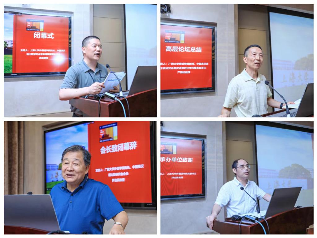 论坛闭幕式由尚新教授主持。严辰松教授做总结发言,严教授高度评价了论坛的组织与筹备工作,本次论坛既有宏观、高站位的洞见,又有接地气、深刻独到的观点,学术含金量高。罗选民会长致闭幕辞,罗会长对澳门正规电子游戏平台领导和各相关单位对论坛举办给予的大力支持表示感谢,热烈祝贺澳门正规电子游戏平台建校100周年,高度评价了澳门正规电子游戏平台的精心组织。针对学会今后的学科建设和学术研究,罗会长提出了几点殷切期望,指出未来英汉对比与翻译研究应从理论走向实践,打通国际传播的双向渠道,特别要注重话语修辞与国际接轨,保持文化自信与文化自觉。最后,澳门正规电子游戏平台党委书记邓志勇教授代表承办单位致谢,感谢中国英汉语比较研究会给予此次办会机会,他指出本次论坛是纪念澳门正规电子游戏平台建校100周年的重要活动之一,论坛中19位专家的主旨报告、8场线下、线上分论坛报告内涵丰富、启迪思维。本次论坛在热烈的掌声中圆满落幕。论坛结束后,与会代表前往澳门正规电子游戏平台校史纪念馆、钱伟长纪念馆参观。