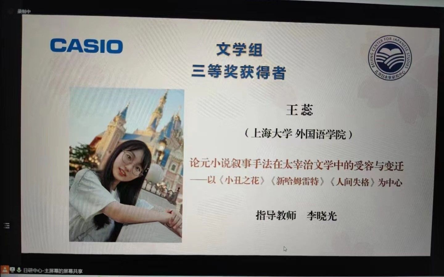 3月17日,第十五届中国日本学研究“卡西欧杯”优秀硕士论文奖颁奖典礼在北京外国语大学举行。澳门正规日语系2022届硕士王蕊同学喜获文学组三等奖,指导教师为李晓光老师。