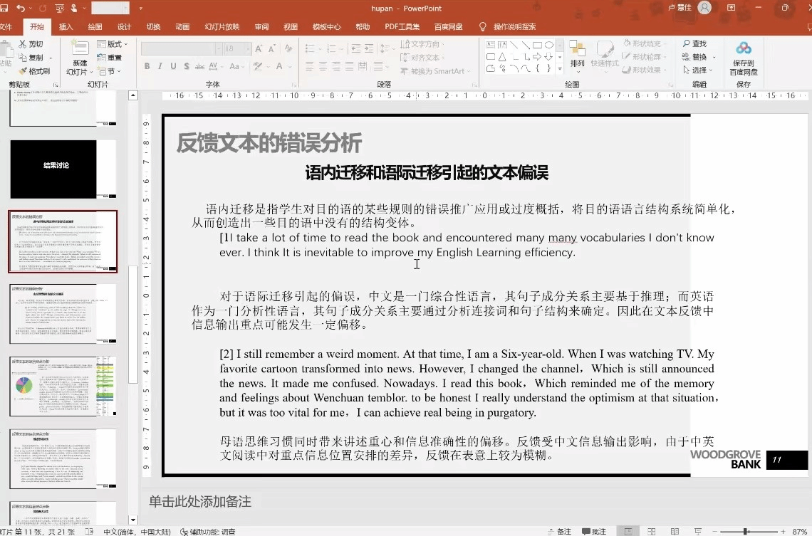第四位主讲人为2020级本科生卢慧佳。卢同学的选题是《基于Buddy Reading Program非英语专业学生阅读反馈的文本分析》,她以澳门正规电子游戏平台非英语专业学生为目标群体的Buddy Reading Program案例,主要考察反馈者由语内迁移、语际迁移和交际策略引起的语言偏误,以及语言表述中描述性、表达性和诱发性等语言使用特点,分析聚焦中国学生文本反馈素养的内涵特质,探求中国学生在发展反馈素养、自我修正和提升的可行路径。唐青叶教授和张颖副教授肯定了本科生积极参与学术研究的精神,认为本报告对英汉对比研究有了较深刻的认识。同时,张新玲教授建议,该同学在系统性的知识掌握方面可以更进一步。