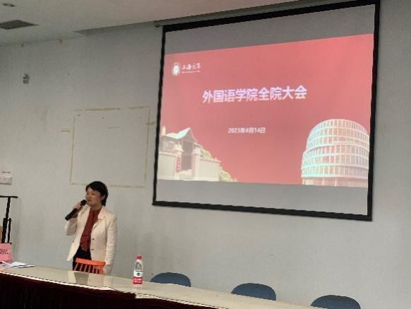 接下来进入大会第二项环节,尚新院长介绍了学院新进教师,分别是从湖南大学引进的日语教授苏鹰,以及从华东师范大学引进的日语专业博士张哲瑄。全体教师以热烈的掌声欢迎新老师的到来。