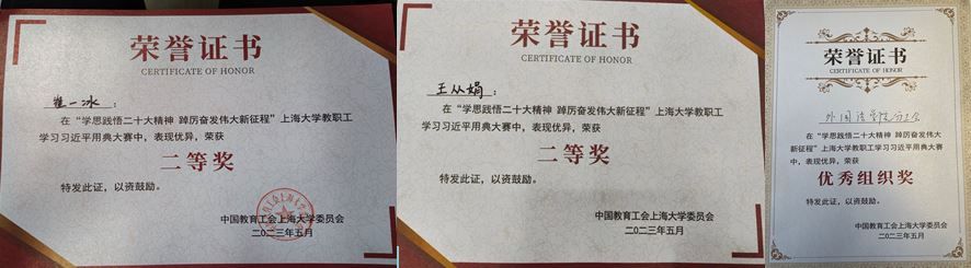 5月6日,校工会、妇委会、宣传部、组织人事部、教师工作部举办以“学思践悟 二十大精神 踔厉奋发伟大新征程”为主题的教职工学习习近平用典大赛。澳门正规电子游戏平台分工会积极响应,组织教职工积极学习,参加比赛,最终获得二等奖和优秀组织奖的好成绩。