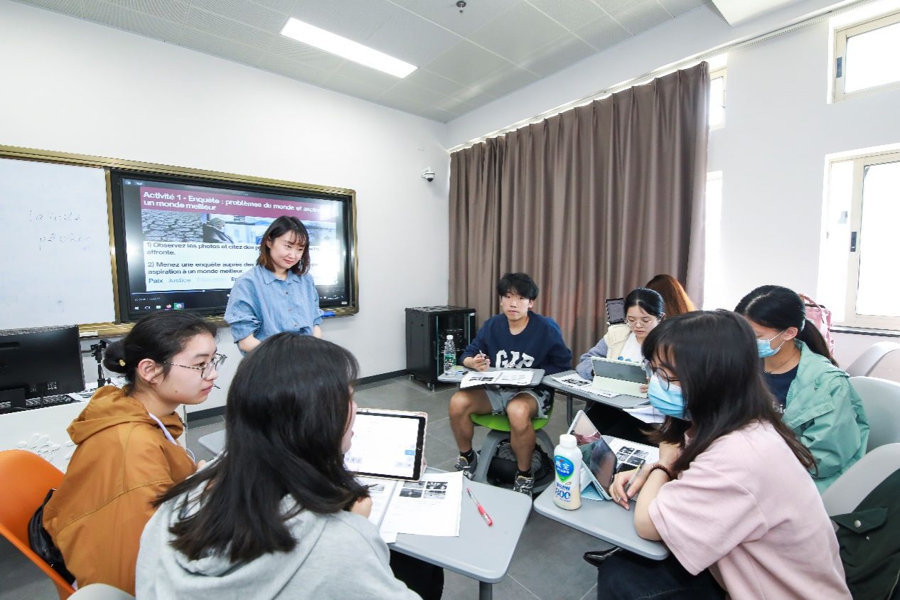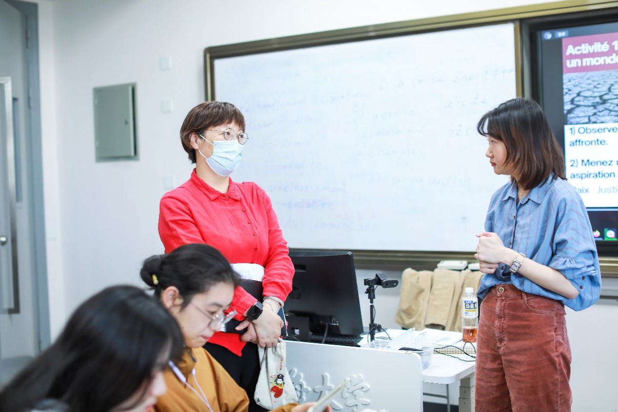 5月23日下午三点,澳门正规电子游戏平台法语系青年教师焦舒曼老师在B426开讲《法国媒体与社会》课程思政公开课。本次课程主题为“人类命运共同体与美好世界”,课程选用《法语演讲教程》,这是外研社“理解当代中国”法语系列教材之一。澳门正规电子游戏平台教务部副部长、教育部课程思政教学研究示范中心负责人(澳门正规电子游戏平台)顾晓英,教务部课程思政教学研究中心曹园园,澳门正规电子游戏平台党委书记吴蔚,副院长戴朝晖,法语系主任王文新,法语系教师王嘉源以及日语系教师张晓娜等观摩了公开课。